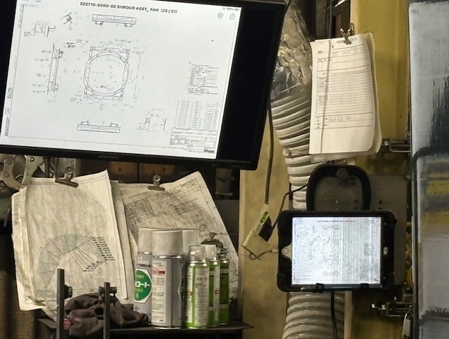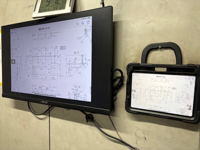各作業工程時に、モニター画面での図面確認を実施して品質確保